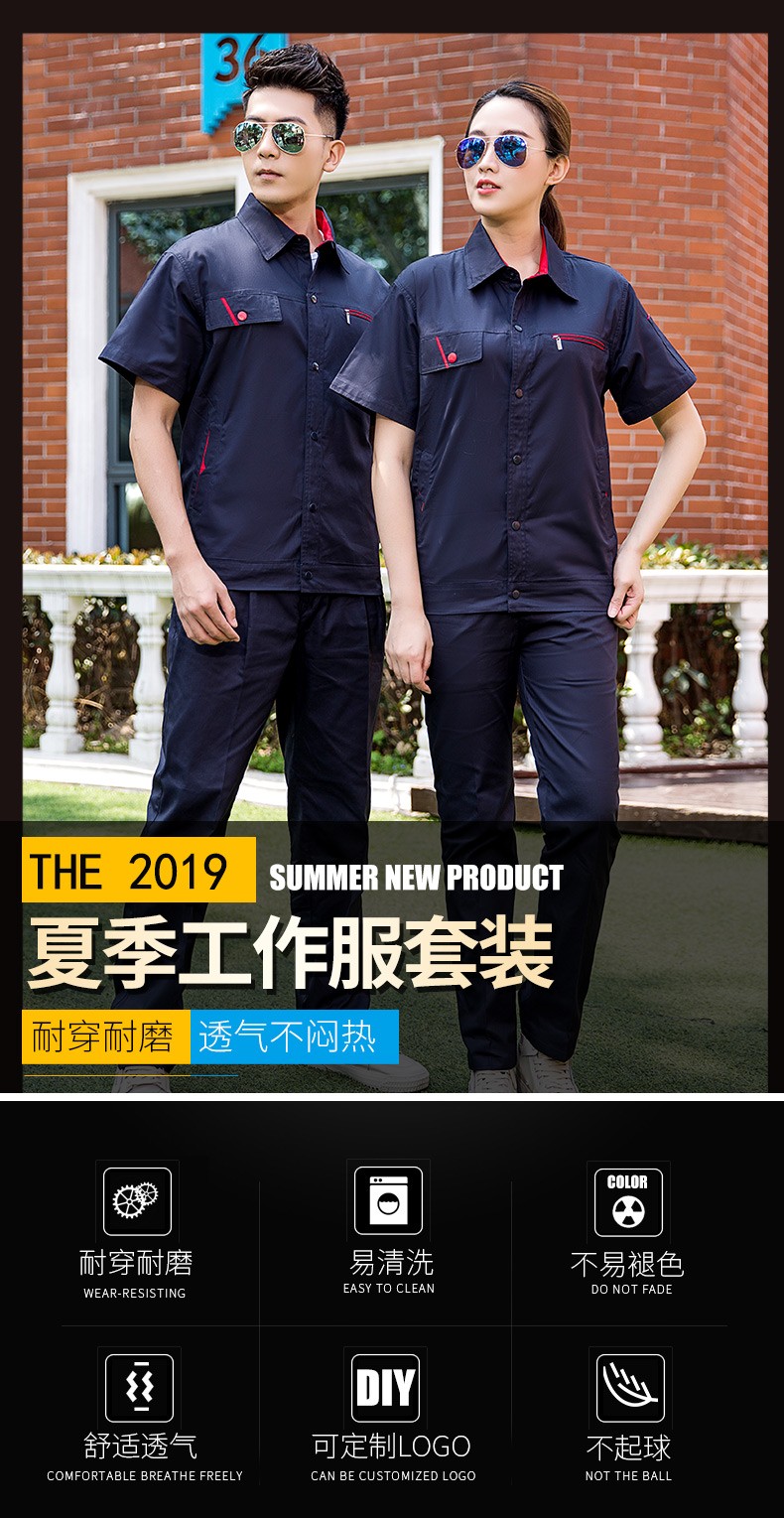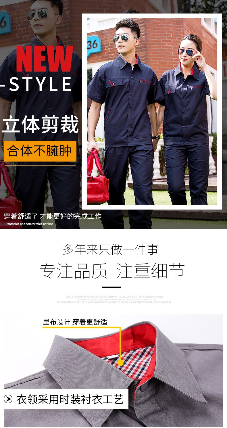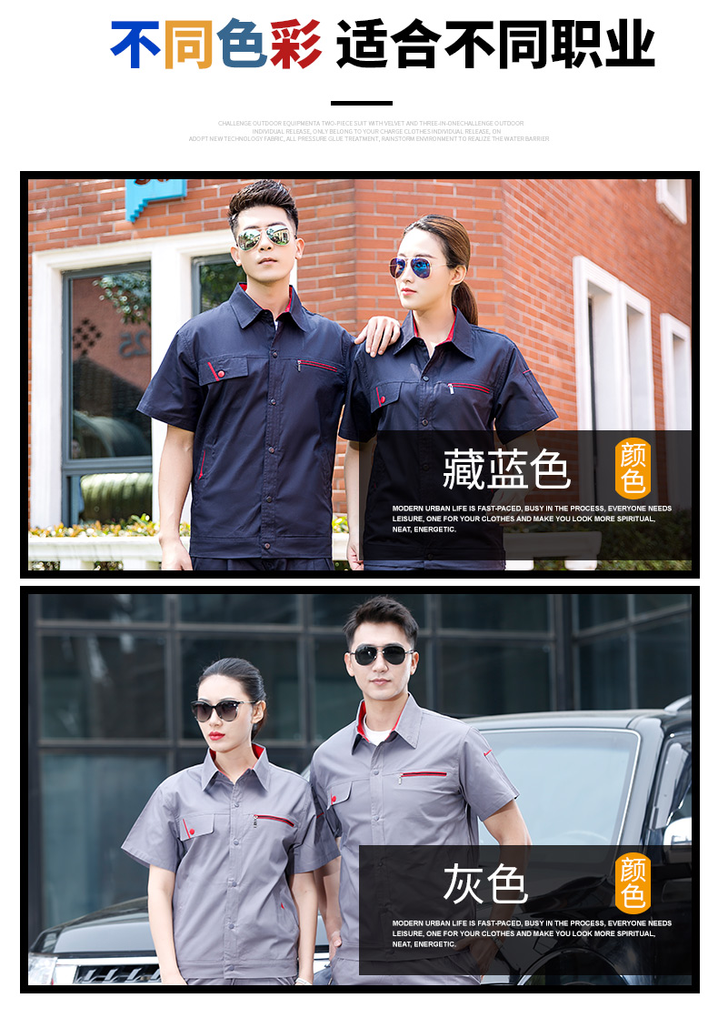 時尚工作服,夏季純棉工作服長短袖同款,2種顏色,夏季長袖短袖同款