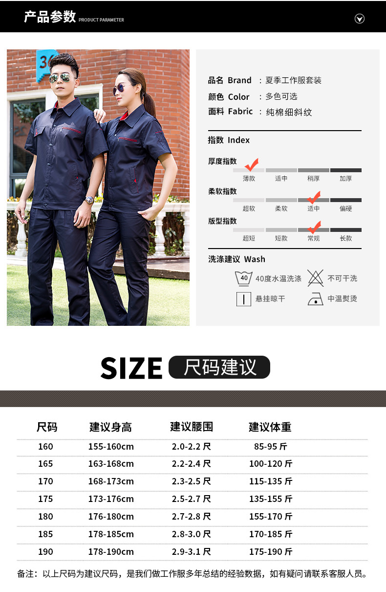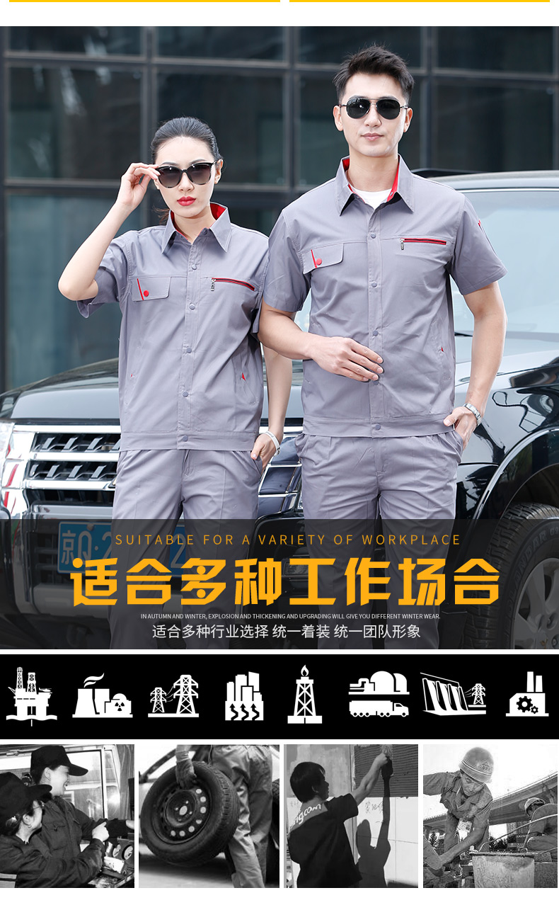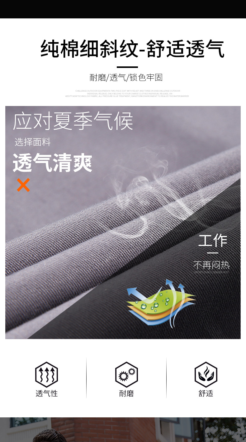 時尚工作服,夏季純棉工作服長短袖同款,2種顏色,夏季長袖短袖同款